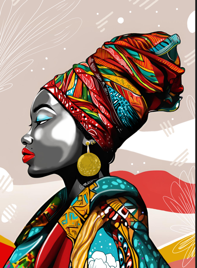 Illustration de femme africaine, colorée, en format A3 à encadrer